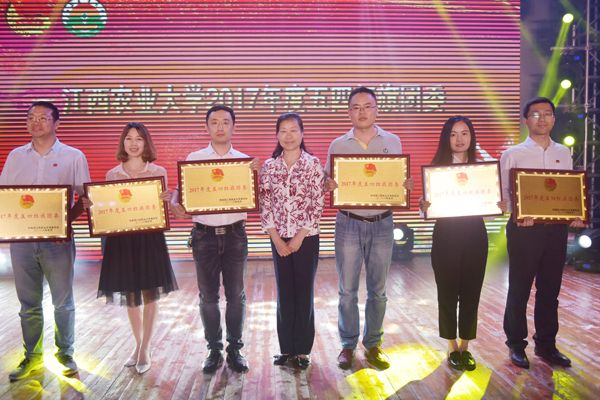 晚会中场,举行了纪念五四运动99周年暨建团96周年颁奖典礼。校团委书记高鹏宣读五四表彰决定,对国家级、省级、校级2017年度“优秀共青团员”、“优秀共青团干部(学生)”、“五四红旗团支部”、“模范团员”、“优秀共青团干部(教师)”、“五四红旗团委”等进行了通报表彰。胡春晓等领导嘉宾为获得2017年五四表彰的集体和个人颁发了荣誉奖牌。