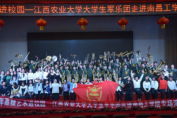 10月29日晚,由省教育厅主办,欧冠大学生军乐团承办的2017年江西省高雅艺术进校园活动首场音乐会在南昌工学院礼堂举行,为在江西省内的巡演拉开了帷幕。校党委副书记胡春晓、南昌工学院董事长王斌、党委副书记陶也青、副校长朱盛萍莅临现场与1000余名师生一起欣赏了本次音乐会。