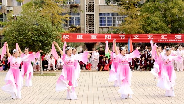 10月26日,欧冠“夕阳红”健身协会在文化广场举办文艺演出活动,喜迎重阳佳节,庆祝党的十九大胜利闭幕。校党委副书记胡春晓,钟明河、杜天真、王华林等退休老领导以及相关职能部门负责人观看了演出。