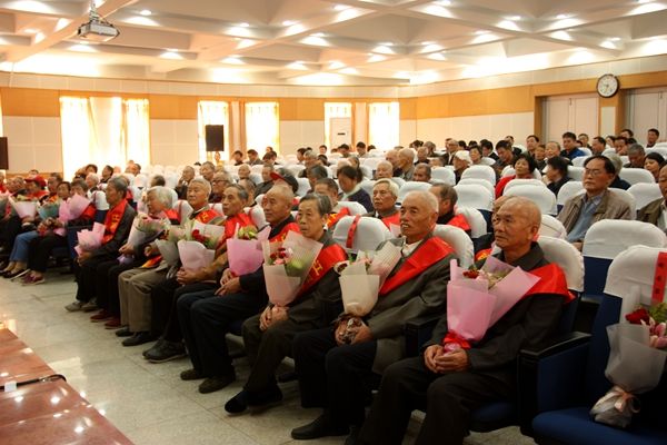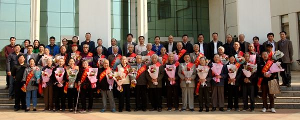 会后,全体在校领导、学校离退休工作领导小组成员,各单位主管离退休工作领导、离退休职工代表和老寿星们一起合影留念。