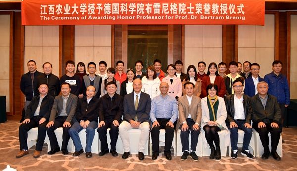 10月16日下午,德国哥廷根大学教授、德国科学院院士Brenig教授受聘欧冠荣誉教授。校党委书记黄路生院士为Brenig教授颁发了荣誉教授聘书,校长赵小敏主持聘任仪式,副校长许斌华、刘木华出席,党办校办、人事处、动科院、省部共建猪遗传改良与养殖技术国家重点实验室的负责人及师生代表参加受聘仪式。