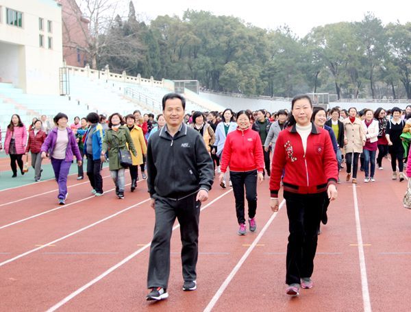 3月7日下午,校工会组织开展“我运动,我健康,我美丽”健步走活动,全校女职工以运动健身的方式,庆祝“三八”妇女节。校党委副书记胡春晓,副校长许斌华来到田径场与女职工们一起参加本次活动。副校长许斌华代表学校发表热情洋溢的讲话,向全校所有女教职工致以节日的祝福。大家纷纷表示,健步走活动既能够锻炼身体,又能增进女职工们之间的沟通和交流,是一项有利于身心健康的活动。
