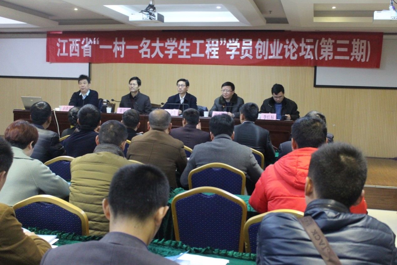2016年12月26日,江西省“一村一名大学生工程”第三期农民大学生创业论坛在南昌召开。省委农工部副部长赖金生、副校长赵小敏、中国邮政集团公司江西省分公司副总经理黄君仲出席,全省“一村一名大学生工程”学员代表80余人参加论坛。