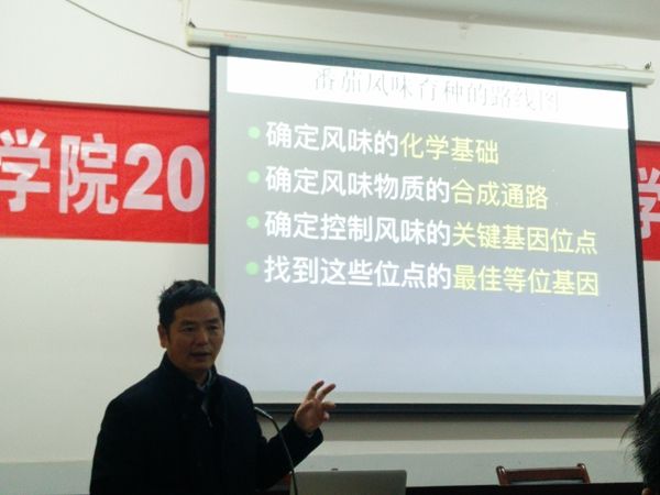 王晓武研究员首先从趋同驯化的概念以及存在的普遍性出发,重点介绍了运用基因组测序结果从基因组和亚基因组水平解析白菜和甘蓝叶球形成以及根茎膨大趋同驯化的分子机制;黄三文研究员则从国际蔬菜基因组学产生的背景及研究现状出发,介绍了其课题组多年来利用基因组学技术在蔬菜品质改良中所取得的重要成果,最后重点围绕黄瓜的苦味相关基因(Bl和Bt基因)的筛选和功能验证以及番茄风味育种的路线设计两个案例,为与会者描绘了一幅优质蔬菜育种的基因组蓝图。两位研究员结合其课题组多年来的研究成果,利用详实的实验数据、精准的实验结果,图文并茂地为我们展示了两场非常精彩的学术报告,开阔了师生们的视野。