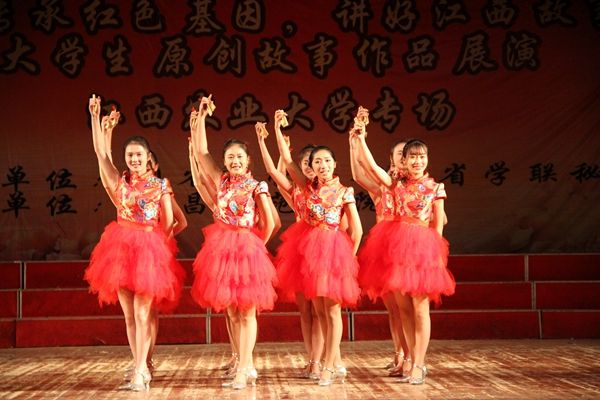 展演以“传承红色基因,讲好江西故事”为主题,共分为传统篇、励志篇、弘扬篇三个篇章,通过故事讲演的艺术形式,利用生动鲜活的语言和真挚的表演,将革命前辈的精神财富传递给青年一代。故事《方志敏 》用对话再现了红军英雄感人的革命故事,表现了革命先辈们坚定的理想信念;《特殊的考试》讲述了当代大学生的英雄事迹,展现了青年学子正直勇敢、自强自立的优秀品质,获得了全场观众的阵阵掌声。道德模范龚全珍老人感人肺腑的故事,将中华民族的传统美德展现在观众面前。最后,演出在歌伴舞《共筑中国梦》的歌声中圆满结束。