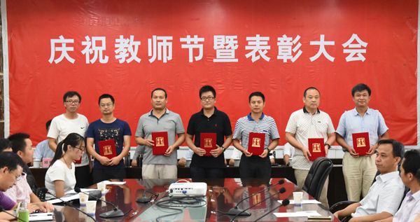 为庆祝第32个教师节,进一步营造尊师重教氛围,9月9日下午,学校在校办二楼会议厅召开庆祝教师节暨表彰大会。校领导黄路生、陈金印、赵小敏、贺浩华、许斌华、黄英金,校长助理邱晓辉出席,并为先进集体、先进个人代表颁奖。各单位负责人、2013至2016学年“三育人”先进集体代表和先进个人、学生代表参加。校党委副书记陈金印主持大会。