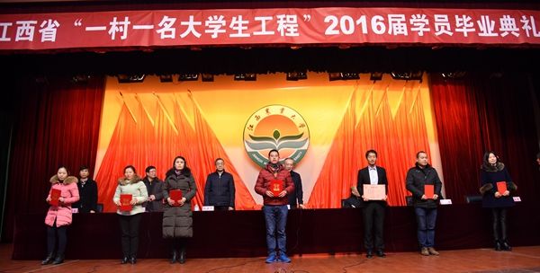 1月20日,全省“一村一名大学生工程”2016届学员毕业典礼在欧冠逸夫报告厅举行。省委副秘书长、农工部部长毛祖逊,省委农工部副部长赖金生,省电大校长沈建华、副校长钟志贤,江西农大校长黄路生院士、副校长许斌华出席,2016届“一村一名大学生工程”毕业学员约600余人参加。副校长赵小敏主持典礼。