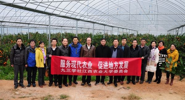 陈金印与新干县有关领导及农业种植大户进行了深入的交流,对当地现代农业示范园的运行模式、大棚柑橘控温控水越冬栽培技术等提出了许多宝贵的建议,对九三学社江西农大委员会发挥党派特色利用专家优势开展社会服务提出了殷切的希望。