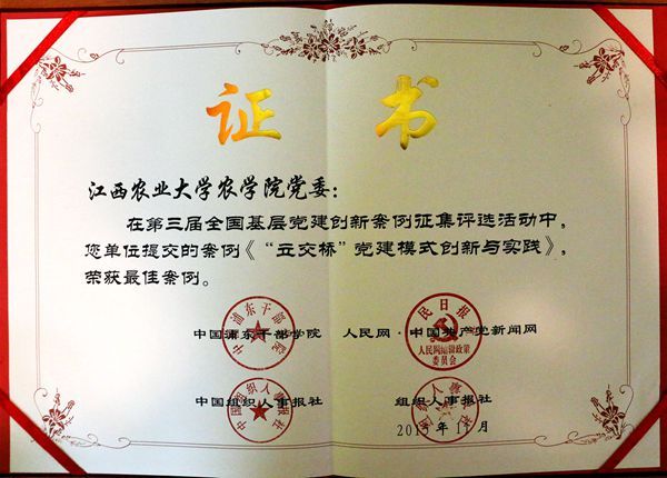 全国基层党建创新典型案例征集评选活动自2009年开展以来已连续举办三届,活动得到中央有关部门的有力指导及地方各级党组织的大力支持,影响力不断提升。第三届全国基层党建创新案例征集评选共征集到2300多个基层案例。经过初选、复选,网友推荐和专家评审,最终评选出30个最佳案例和60个优秀案例。(组织部、农学院)