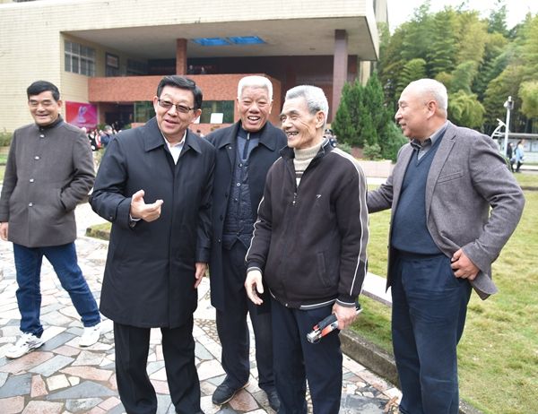 返校期间,陈德铭会长还看望了当年一起学习生活的老师、同学,并与大家一起寻访、回顾了当年在校学习、生活的场所,参观了学校校史馆。(宣传部 余刚)