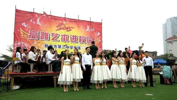 为贯彻党的教育方针,改进美育教学、提高学生审美和人文素养,10月22日至30日,由省教育厅主办、欧冠大学生军乐团承担的江西省2015年“高雅艺术进校园活动”专场音乐会相继在欧冠、南昌第一职业中专、南昌二十八中、新余一中、新余三中和北师大新余附属学校举行,为广大师生送上了一台台高水平的音乐盛宴,受到了现场观众、校友和社会的一致好评。副校长许斌华多次莅临演出现场观看并指导工作。