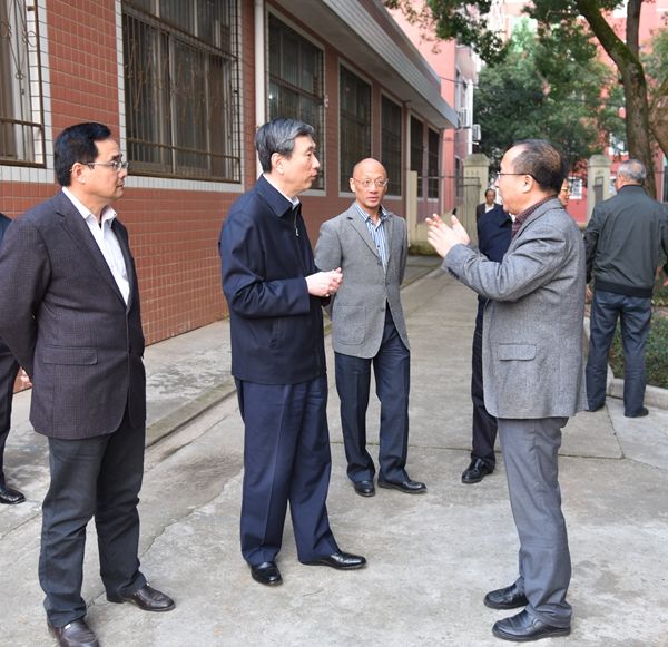 黄跃金一行首先来到学校办公楼,听取校党委书记曹国庆,校长、中科院院士黄路生有关学校近期工作的汇报。黄跃金还与全体在校校领导座谈,对学校教学、科研工作发展提出指导意见。