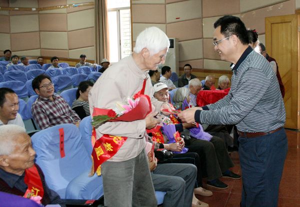 老寿星代表温人炽同志作了发言,感谢学校党政长期以来对离退休工作的大力支持,对老同志身心健康的关心关怀。