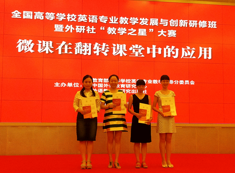 7月30日至31日,第三届外研社“教学之星”大赛(复赛)——微课在翻转课堂中的应用(英语专业组)在湖南省长沙举办。欧冠选派的两位教师刘婷、曾妍表现出色,在大赛中分别获得冠、亚军,成为江西乃至全国唯一一所两名选手同时进入赛区内复赛、决赛并荣获冠、亚军的高校,得到了同行们的高度赞赏!