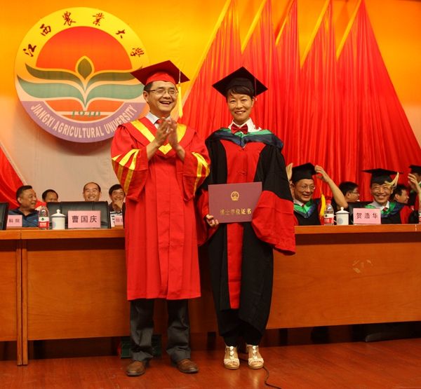 校党委书记曹国庆研究员为获得博士学位的毕业生授予了学位。