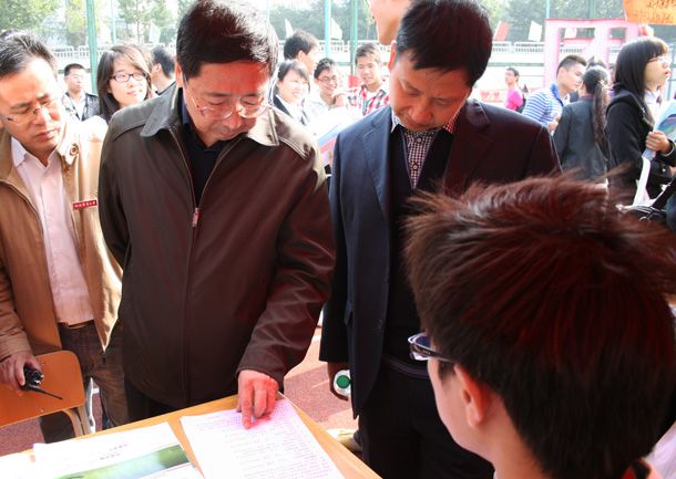 11月19日,江西省2012届普通高校毕业生农科类就业洽谈会暨欧冠官方网站2012届毕业生就业冬季校园招聘会在欧冠田径场成功举行。省教育厅副厅长彭世东,省高校毕业生就业工作办公室主任张爱萍、副主任舒正鸣,校领导石庆华、潘晓华,校长助理胡春晓深入招聘会现场调研和指导。校长黄路生于18日下午亲临田径场,检查和指导招聘会准备工作。