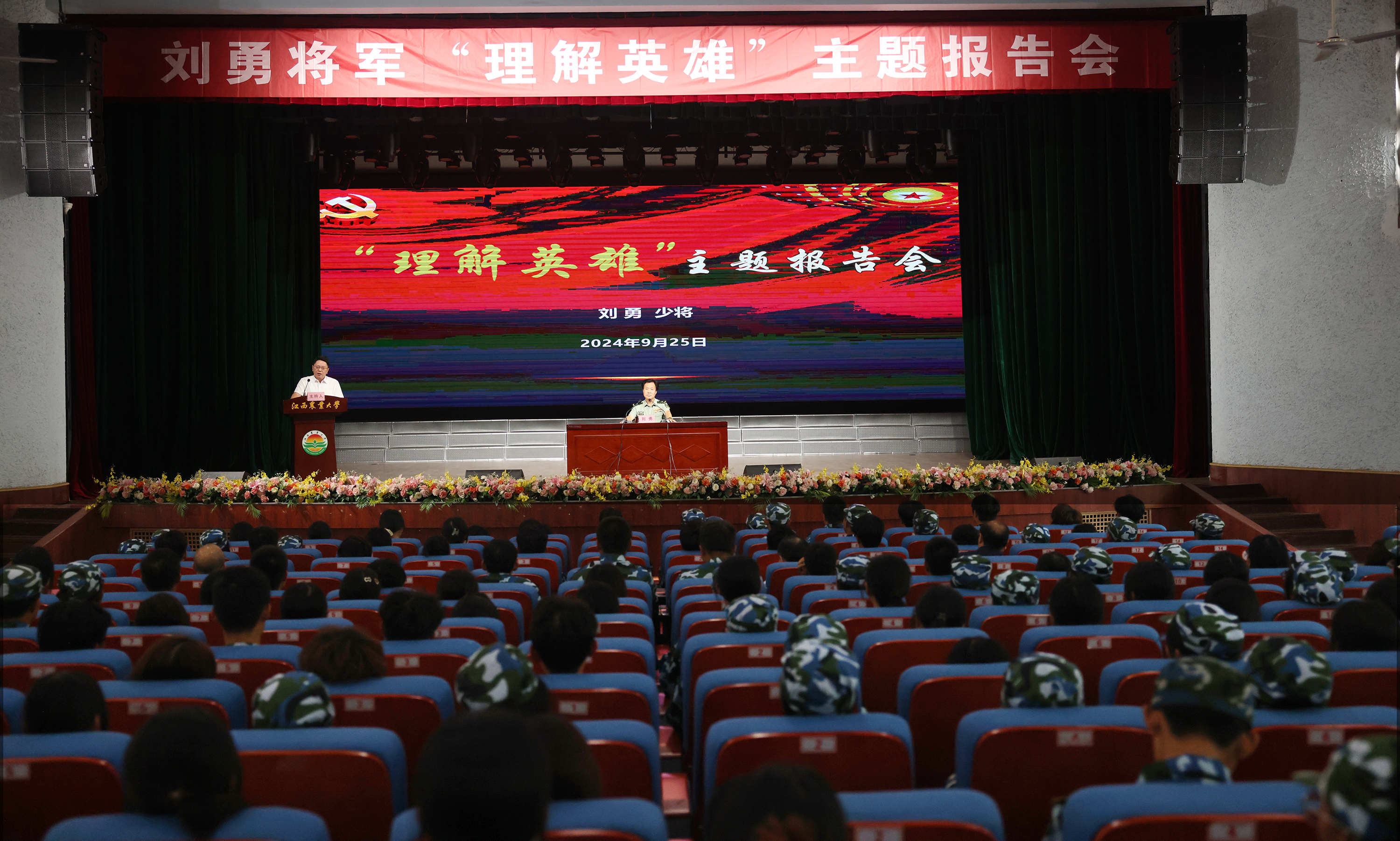 9月25日下午,校大礼堂座无虚席、掌声雷动,一堂特别的开学第一课正在举行。中国人民解放军陆军步兵学院原政委、陆军博物馆筹建办公室专家组组长刘勇少将应邀为师生们作“理解英雄”主题报告。全体在校校领导、各学院党委副书记、辅导员代表、机关处室代表、新生代表近千人聆听报告。校纪委书记刘斯龙主持报告会。