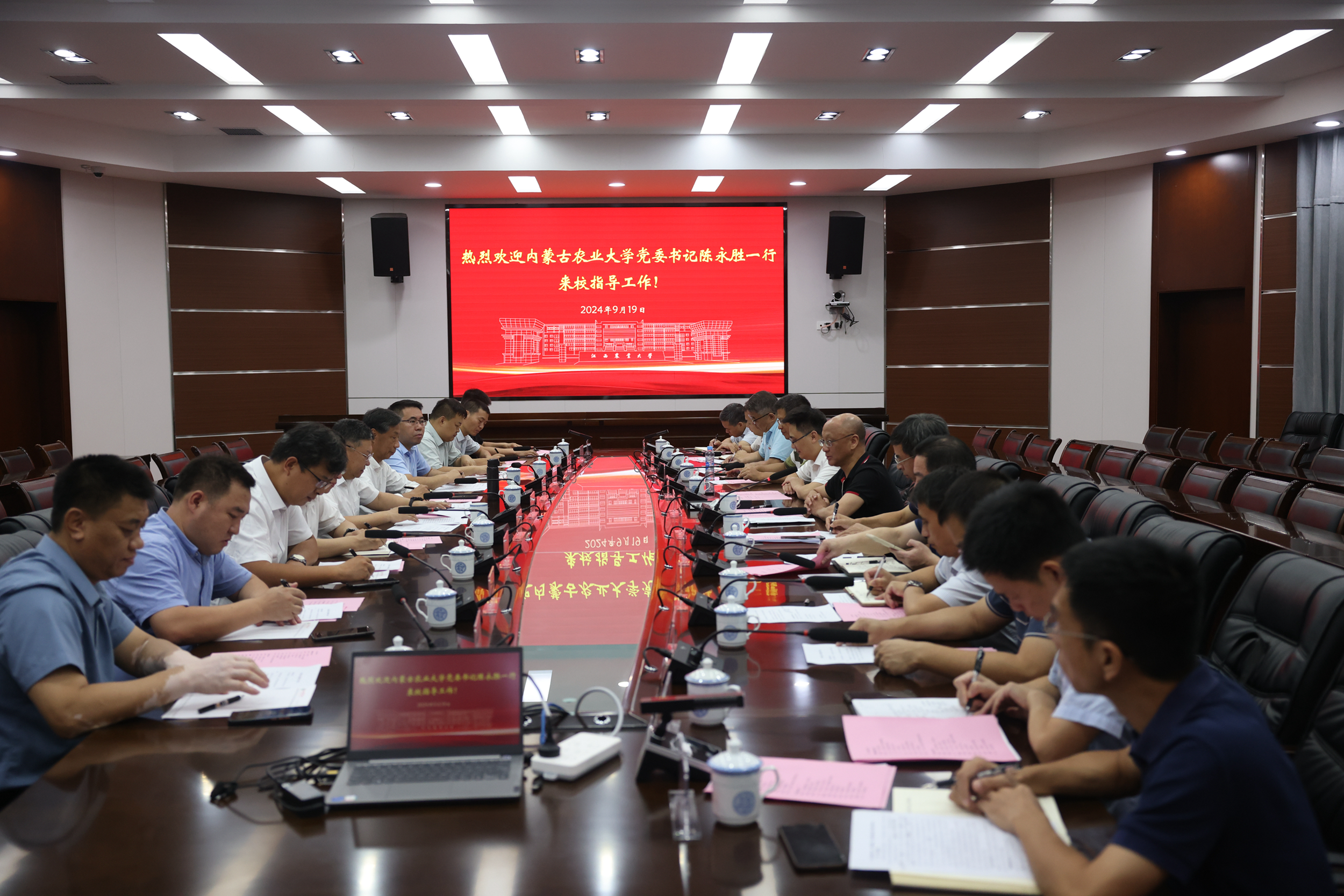 黄路生对陈永胜一行的到来表示热烈欢迎,并介绍了学校的发展建设情况,希望双方以此次交流为契机,持续深化沟通与合作。陈永胜介绍了内蒙古农业大学的基本情况,希望双方加强交流沟通,推动双方合作进一步深化。座谈期间,双方就党建工作、学科建设和科学研究、人才人事工作、招生就业工作进行了深入的讨论。