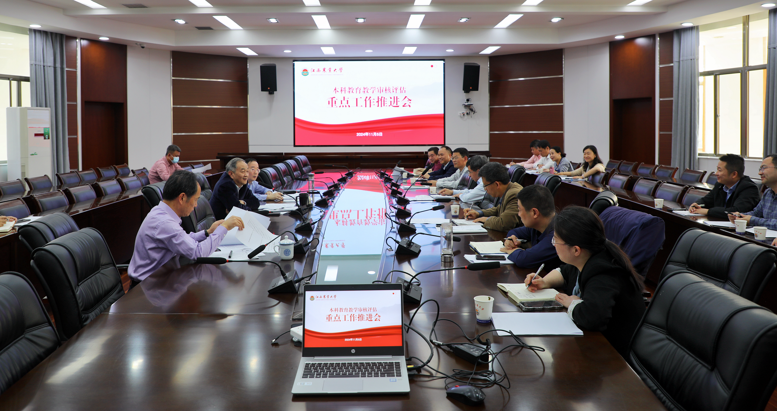 为进一步推动学校本科教育教学审核评估工作,做好迎评工作各项准备,11月5日下午,学校在校办二楼圆厅会议室召开本科教育教学审核评估迎评重点工作推进会。校长魏辅文院士出席,副校长樊后保主持会议。各迎评工作组组长、副组长及联络员,迎评工作指挥办公室专班成员参加会议。