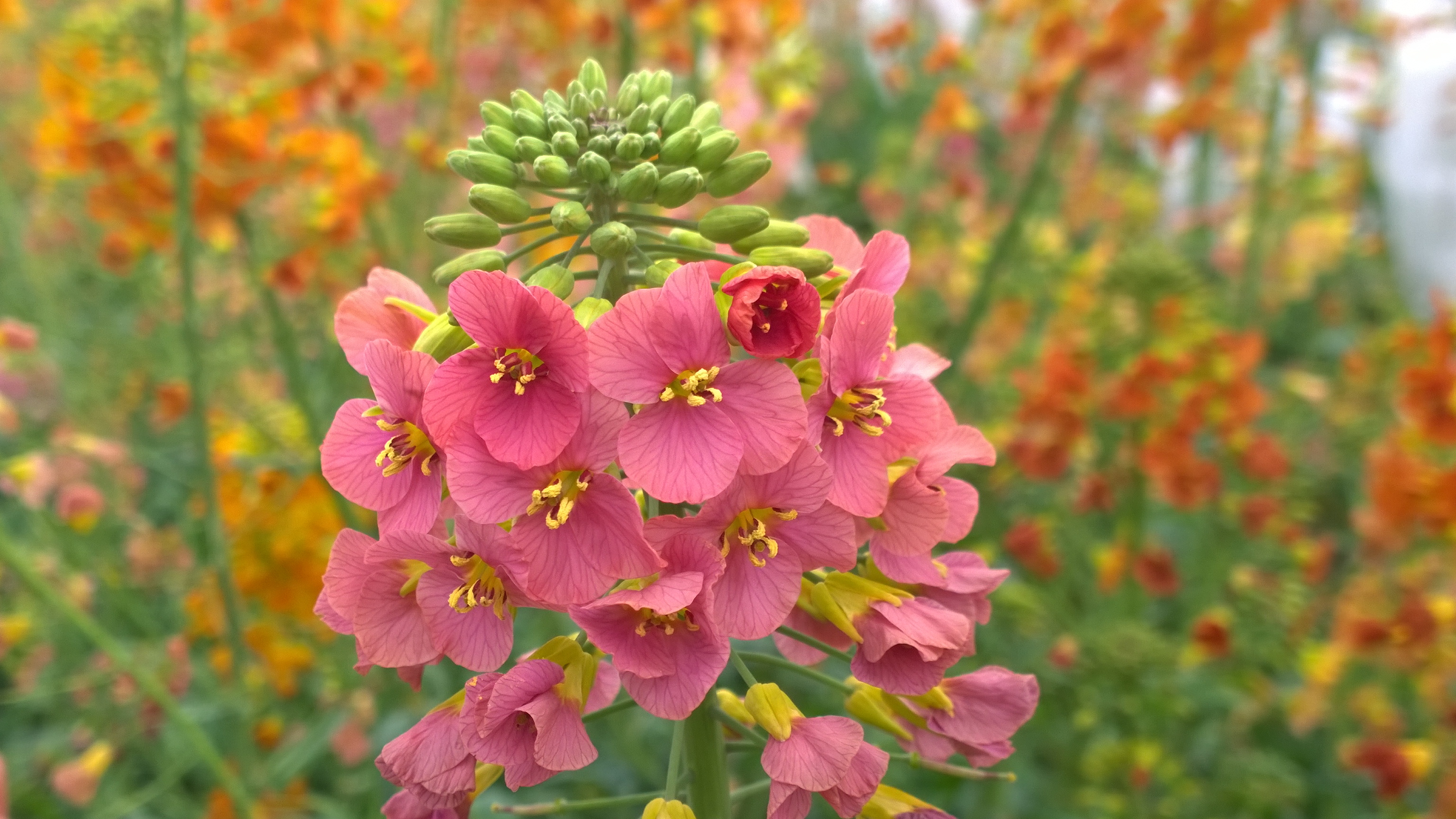 团队负责人付东辉研究员表示,团队从观光型油菜研究出发,紧密结合婺源等地油菜花产业发展的瓶颈问题,培育油菜新花色,开发新的油菜花产品,对促进油菜花产业的持续健康快速发展有积极意义。今年的彩色油菜花具有颜色深、色泽饱满和综合性状优良的特点,在去年36种稳定花色的基础上,新增玫红、深水粉红、粉红、暗红、洁白很亮、极红6种颜色,使稳定花色达到42种。