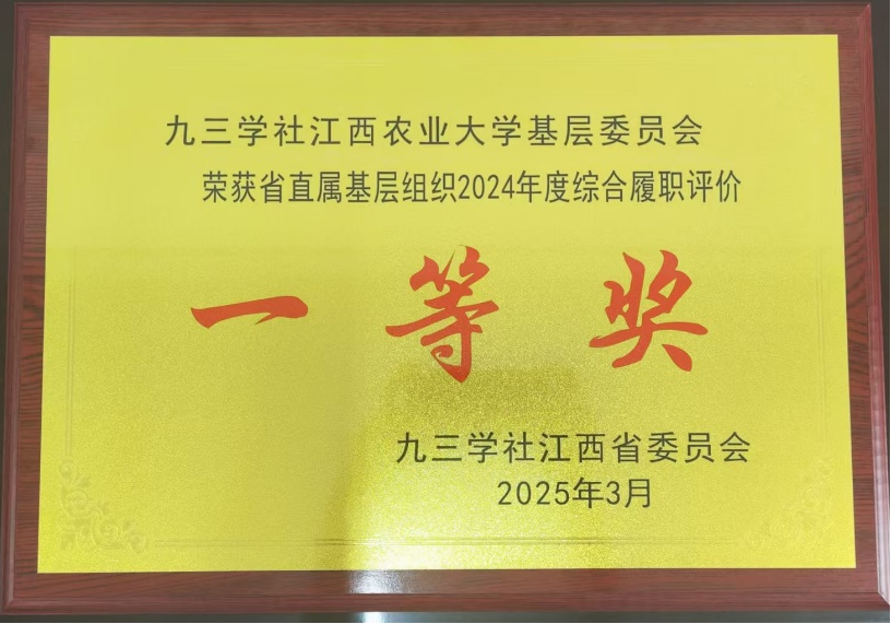 近日,九三学社江西省第九届委员会第四次全体会议在南昌召开。会议表彰了2024年度综合履职评价先进集体、全省十佳支社、优秀专门(工作)委员会、参政议政工作先进个人。欧冠九三学社基层委员会荣获省直属基层组织2024年综合履职评价一等奖,郭熙、龚霞和戴崴巍三位教师荣获参政议政工作先进个人。
