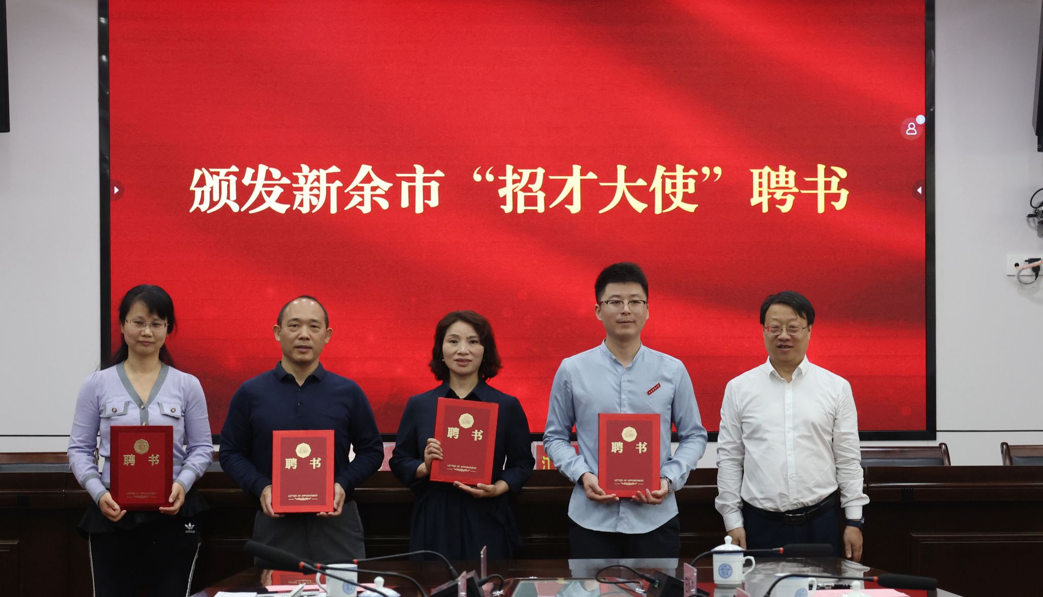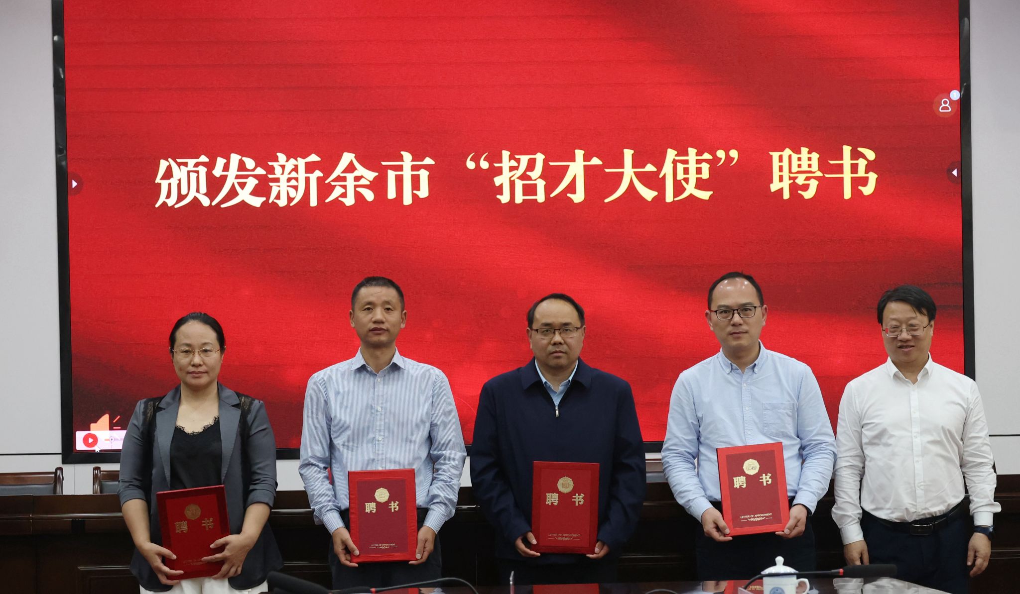 会上,学校相关学院、单位与新余市相关部门、企业签订了一系列科技转化合作协议。林坤为新余籍专家学者代表颁发“招才大使”聘书。