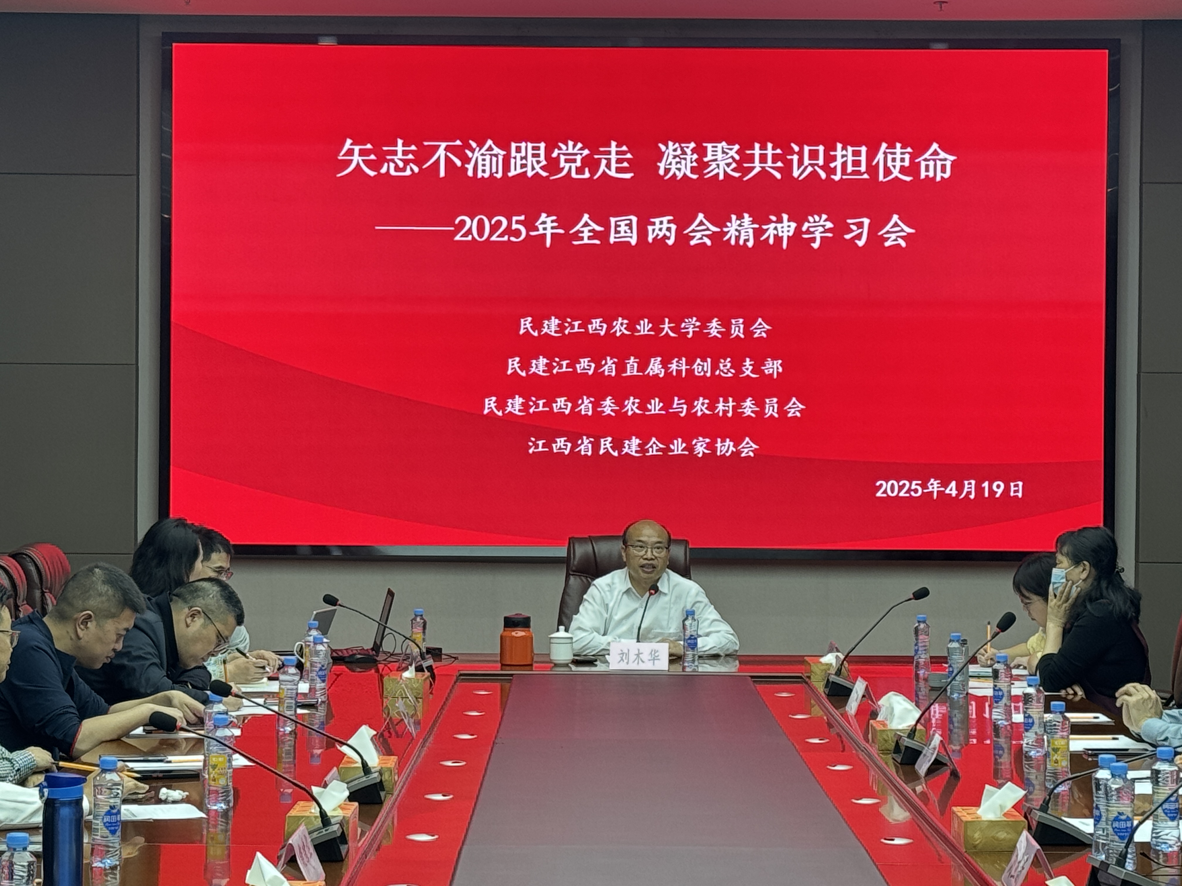 4月19日上午,由民建欧冠官方网站委员会、民建省直科创总支部、民建江西省委农业与农村委员会以及江西省民建企业家协会联合举办的全国两会精神学习会在江西煌上煌集团会议室举行。全国政协委员、民建江西省委会副主委、欧冠官方网站副校长刘木华为本次学习会的主讲人,各组织会员和企业家代表参加会议。