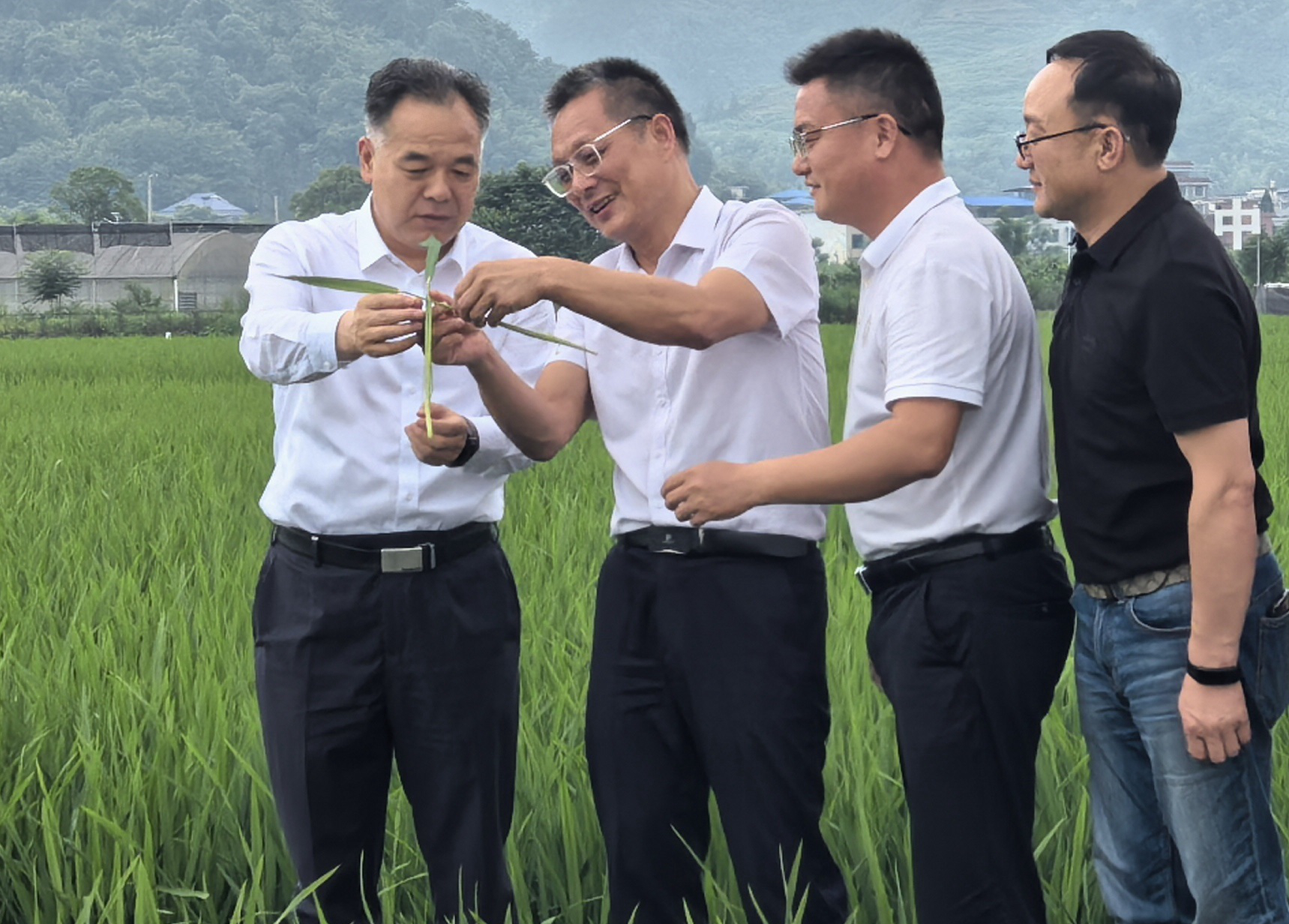 考察过程中,欧冠贺浩华教授介绍了中心近年来在水稻栽培和新品种选育方面取得的进展。陈永奇详细了解水稻种子生产研发等情况,强调要强化种业科技攻关,推动产学研深度融合,构建现代种业全产业链,更好助力种业振兴,保障国家粮食安全。