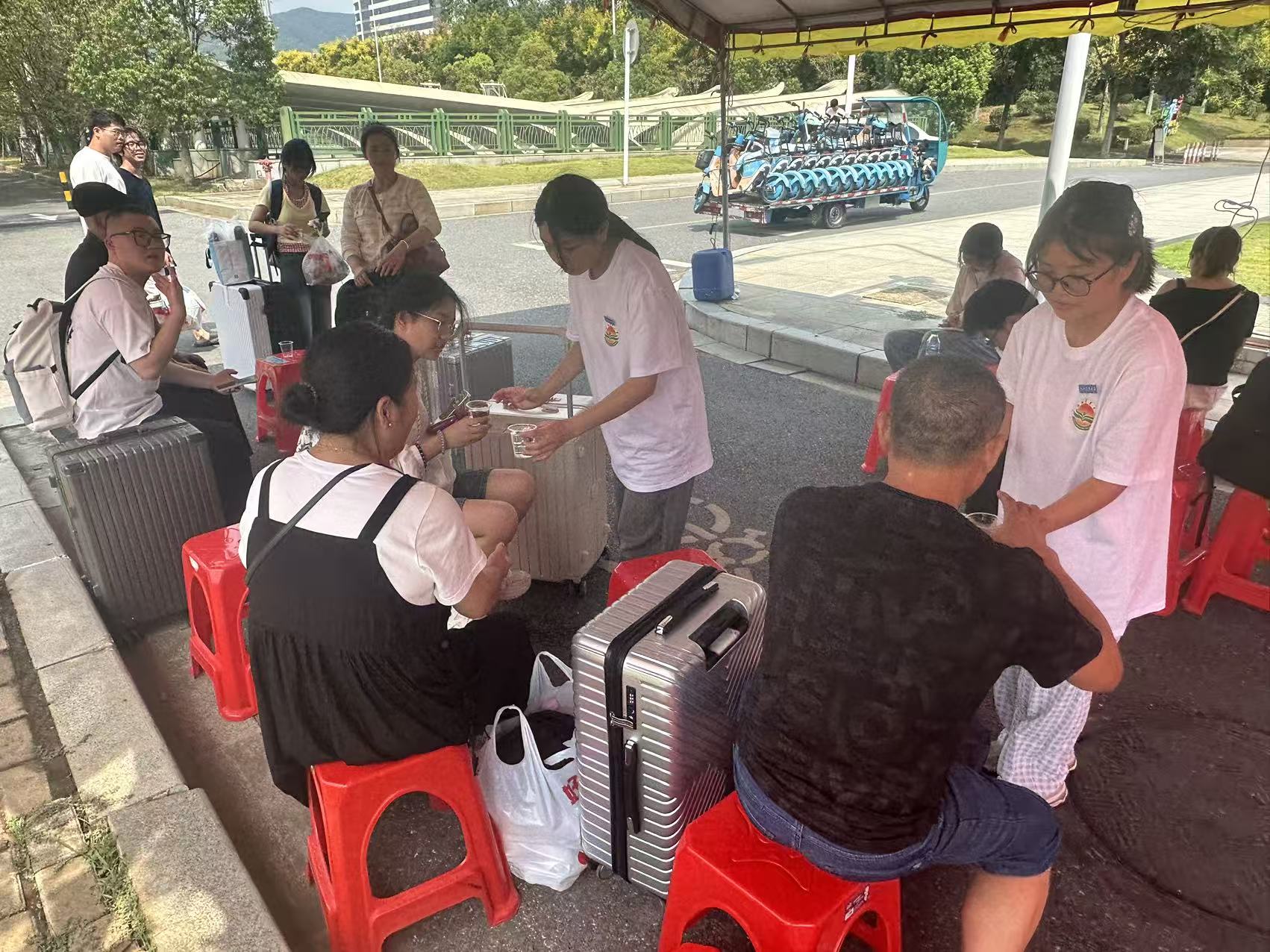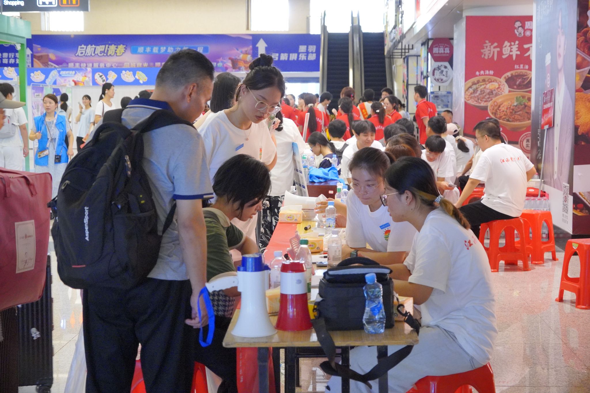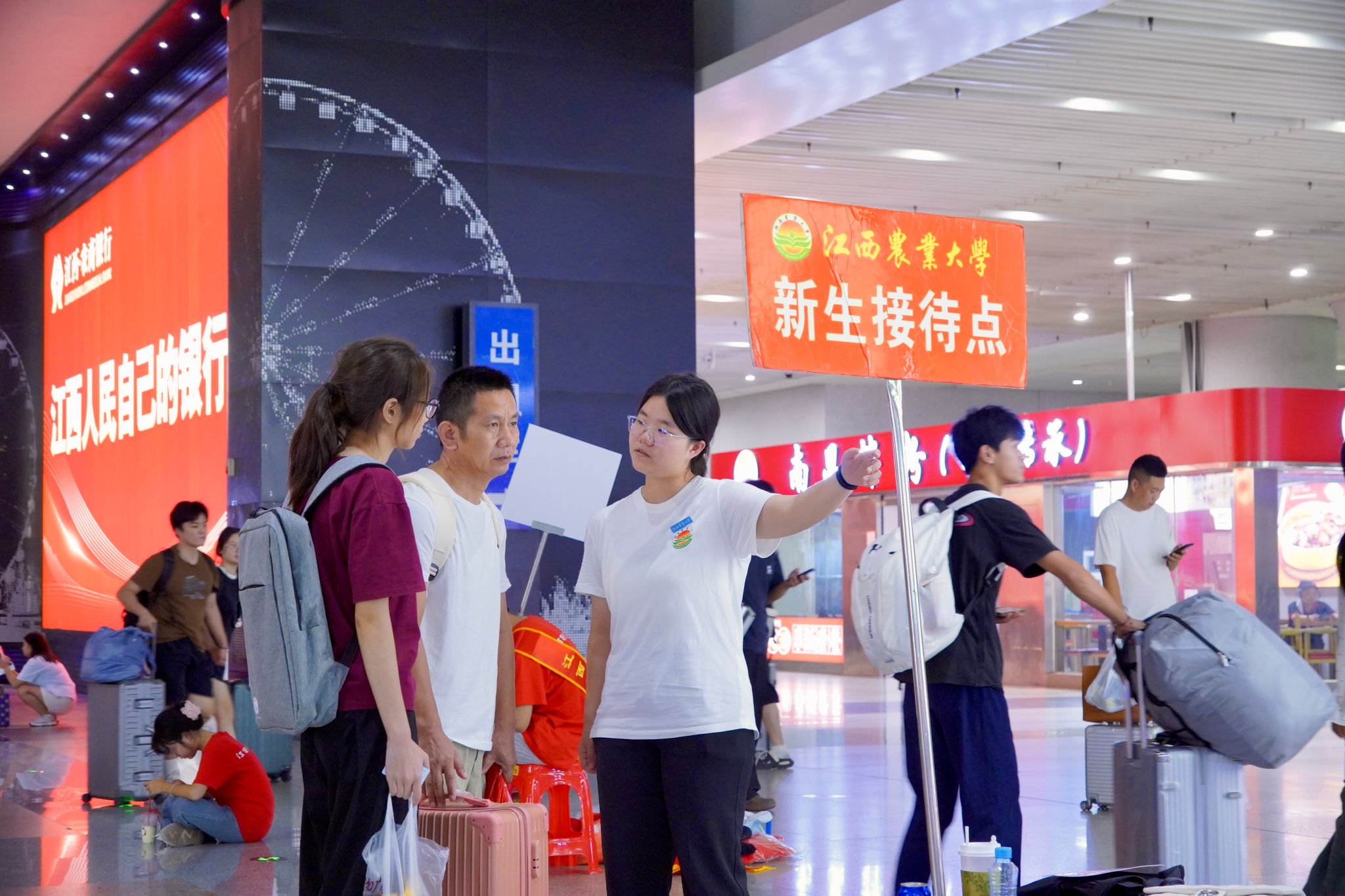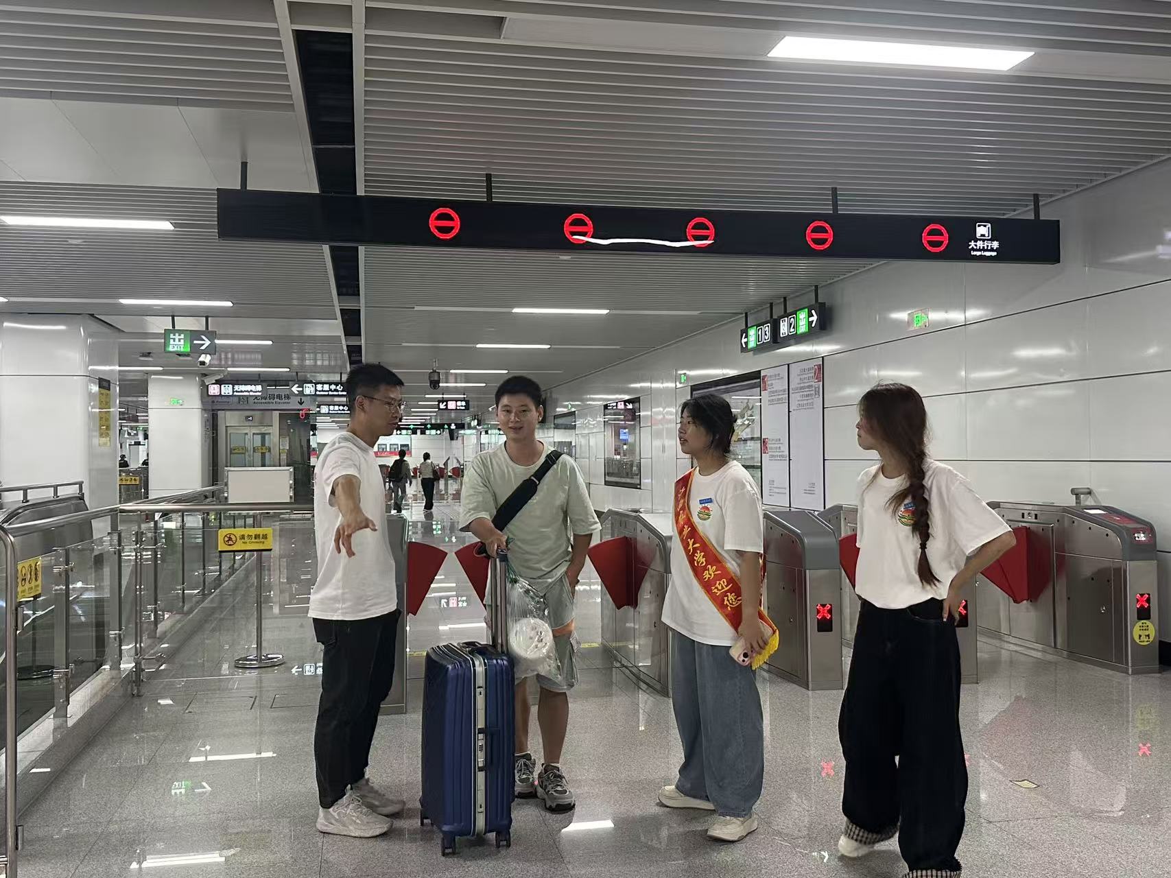 为切实解决新生及家长初到陌生城市的交通困扰,学校重点在南昌西站、南昌站、蛟桥地铁站等客流量大的交通枢纽,设立标准化迎新接驳点。每个接驳点均配备15-20名专属志愿者,他们自清晨6点起便到岗就绪,身着统一标识服装,手持“欧冠官方网站迎新指引”牌,在车站出口、地铁口等显眼位置主动迎候新生——看到携带行李的新生及家长,便第一时间上前问询,协助搬运行李;面对 “报到流程怎么走”“大巴多久一班”“校园宿舍条件如何”等高频问题,志愿者们结合提前培训的内容,耐心细致地逐一解答,用清晰的讲解缓解新生及家长的焦虑。针对自驾前来报到的新生家庭,学校同样做好周全保障:在校园周边主要路口、高速出口等交通节点,不仅设置了清晰醒目的迎新引导标识,更增派志愿者驻守指引——他们顶着烈日,手持指挥旗,协助疏导过往车辆,引导自驾车辆有序驶入校园指定停车区域,有效避免校园入口及周边道路拥堵,用志愿力量打通新生入校的“最后一公里”。