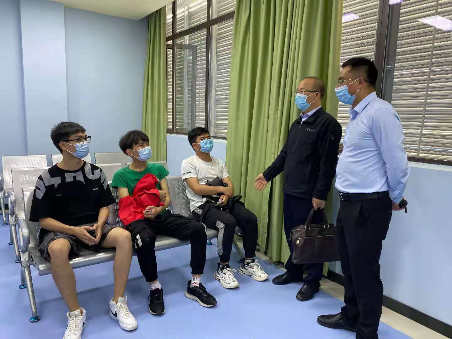5月20日下午,欧冠第一批接种学生乘坐统一车辆,前往经开区人民医院疫苗接种点接种新冠疫苗。副校长曾志将第一时间赴接种点亲切慰问受种学生,检查指导欧冠疫苗接种工作。曾志将认真查看了疫苗接种及留观场所的环境,...