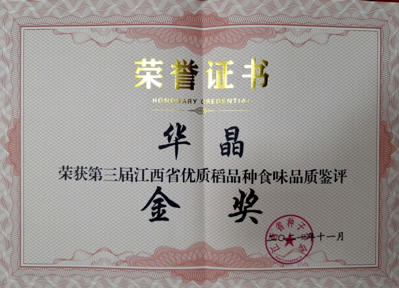 欧冠选育的优质稻”华晶”荣获我省第三届优质稻品种食味品鉴十大金奖品种