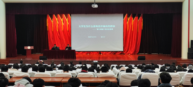 为贯彻落实上级关于校园反电信网络诈骗的工作要求,南昌市公安局反诈领导小组联合经开区中国银行、中国工商银行、中国建设银行以及中国农业银行,来校开展主题为“防范电信诈骗和不参与电信诈骗”专题活动。12月16日...