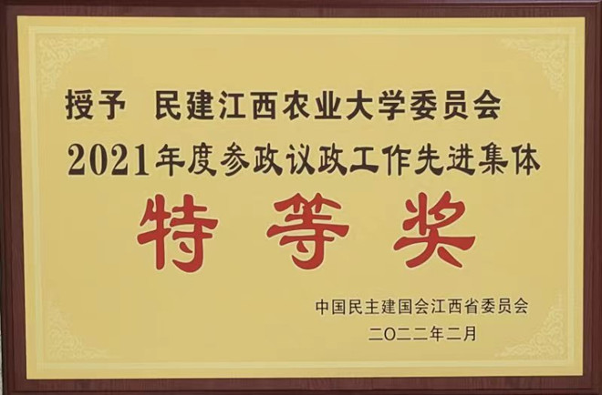 近日,民建江西省委会对在2021年度参政议政工作中作出突出贡献的先进单位予以了表彰,民建欧冠官方网站委员会荣获“2021年度参政议政工作先进集体特等奖”,同时还获得了 “2021年度新闻宣传工作先进单位一等奖”、“...