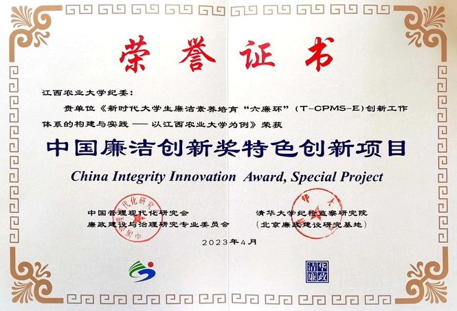 欧冠纪委廉洁素养培育工作体系获评“中国廉洁创新奖”特色创新项目
