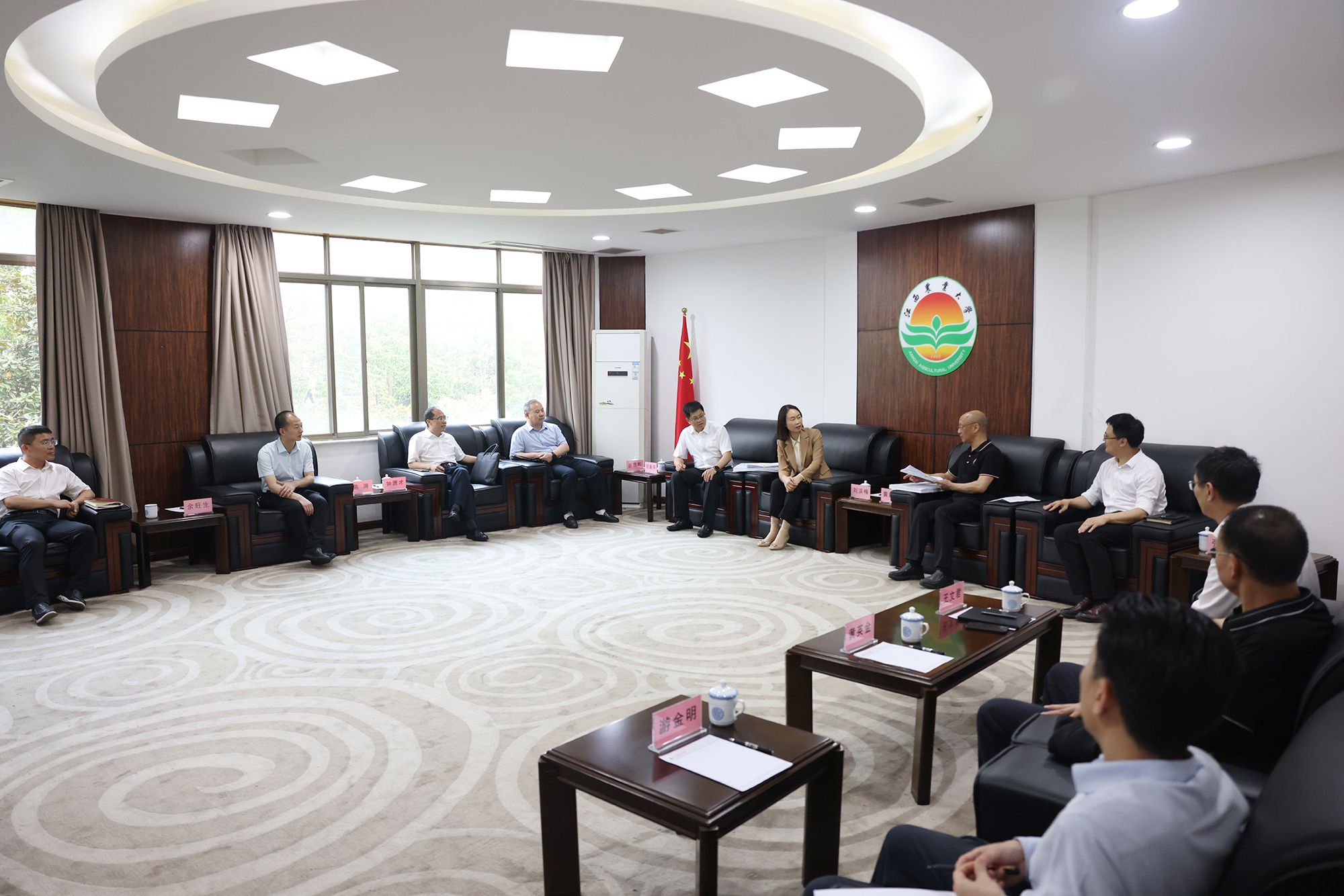 4月15日下午,上犹县委书记刘洪梅,县委副书记何新平,上犹县委办、农业农村局、教科体等单位负责人来校交流并座谈。校党委书记黄路生院士,副校长张高亮、王文君,原副校长黄英金,学校党办校办、科技处负责人参加座...