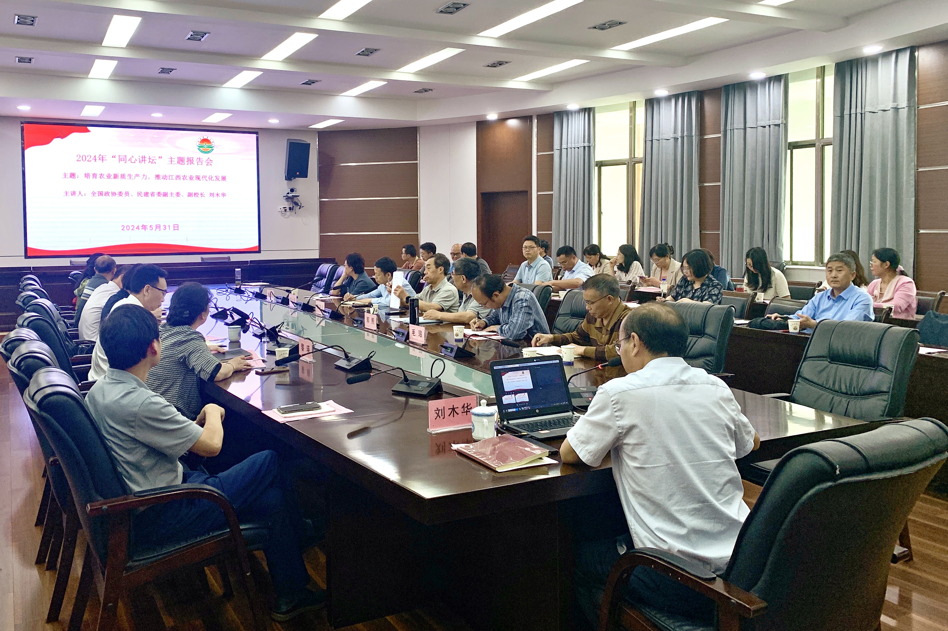 5月31日,学校举办“同心讲坛”主题报告会,全国政协委员、民建省委副主委、副校长刘木华出席会议并作主题报告,省政协委员、学校统一战线工作领导小组成员单位主要负责人、全校副处级以上党外干部、各民主党派主委、...