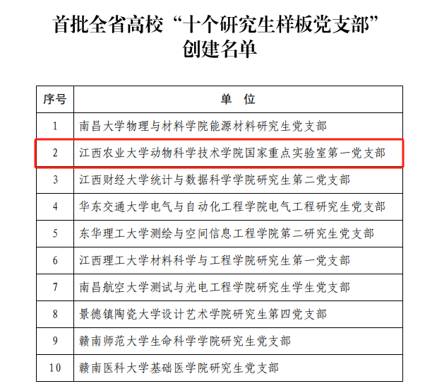 欧冠动物科学技术学院国家重点实验室第一党支部获批创建首批全省“研究生样板党支部”