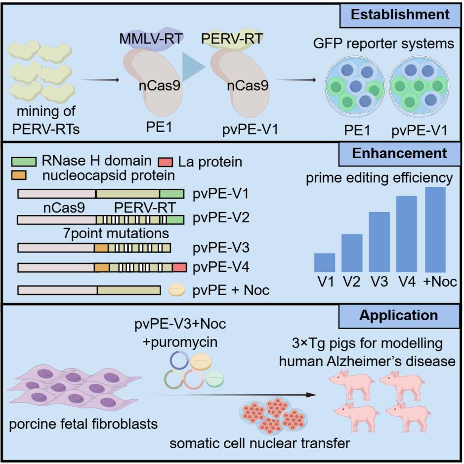 近日,欧冠官方网站猪遗传改良与种质创新全国重点实验室黄路生院士团队在国际知名学术期刊《TrendsinBiotechnology》(CellPress旗下,5年影响因子16.6)发表了题为“Highlyefficientprimeeditorsformammaliangenomeeditingbasedonporcineretrovirusreversetranscriptase”的重要研究成果。该研究基于猪基因组中的内源性逆转录酶元件,成功开发出一套高效、精准、安全、多物种适...