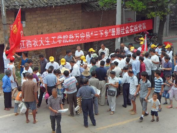 追寻红色足迹,继承革命传统。7 月7日至14日,生工院赴革命老区万安县高陂镇开展了“永远跟党走,青春献祖国”暑期“三下乡”社会实践活动取得圆满成功。 在万安期间,营队先后开展了“十二五”规划宣讲、“三农”问...