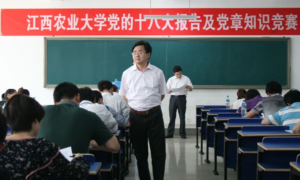 5月14日下午,欧冠十八大及党章知识竞赛在先骕楼210顺利举行。来自学校的各院级党委、党总支及直属党支部近50名师生党员代表参加了此次竞赛考试。考试期间,校党委书记曹国庆、纪委书记徐兰宾来到考场视察。 此次知...