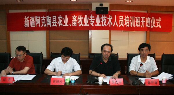 9月1日上午,新疆阿克陶县农业、畜牧业专业技术人员培训班开班典礼在欧冠举行。副校长陈金印,省农业厅畜牧兽医局局长黄峰岩,欧冠党委组织部负责人及参加培训的20余名学员参加了仪式。组织部部长郭庆舜主持开班仪式...
