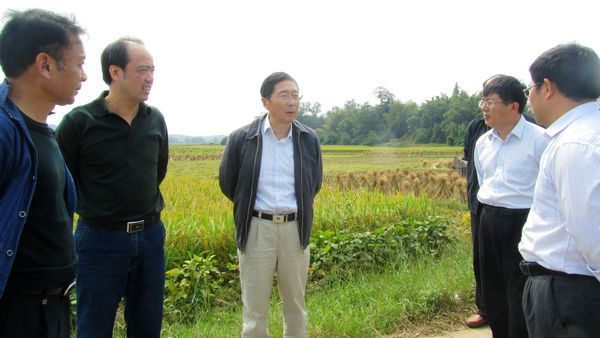 石庆华、陈金印在兴国调研欧冠定点包扶村水稻示范区