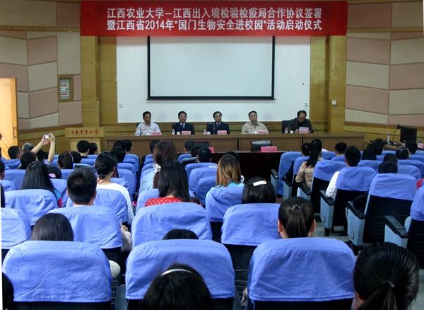4月10日,欧冠与江西出入境检验检疫局在科技报告厅联合举行合作协议签署暨江西省2014年“国门生物安全进校园”活动启动仪式。校党委书记曹国庆、江西出入境检验检疫局局长吕志平出席仪式并致辞。校党委副书记陈金印主...