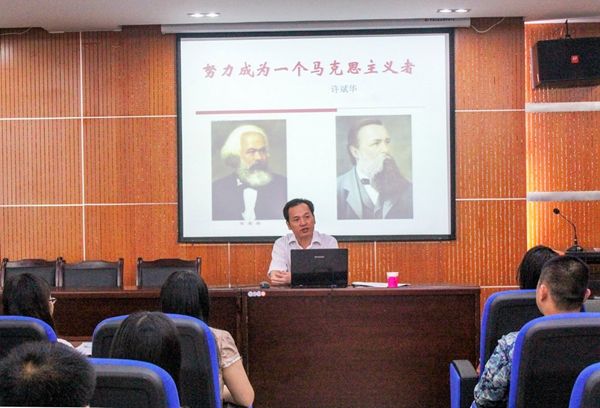 9月24日上午,在政治学院109报告厅,副校长许斌华应邀为该院2014级研究生新生做《努力成为一个马克思主义者》的专题报告。 许斌华从“历史作出的选择”、“现实引起的思考”、“青年应有的理想”等三个方面进行了深...
