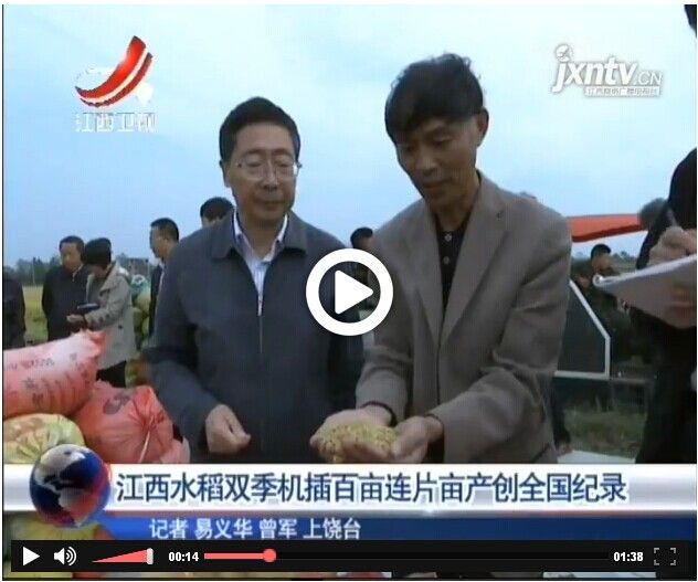 江西卫视报道:江西水稻双季机插百亩连片亩产创全国纪录