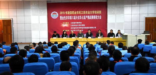 12月3日,由江西省作物学会、欧冠官方网站、北京金色农华种业科技股份有限公司共同主办的2015年新型职业农民欧冠官方网站培训班暨金色农华第三届天优华占高产挑战赛颁奖大会在欧冠举行。江西省作物学会理事长、欧冠原...