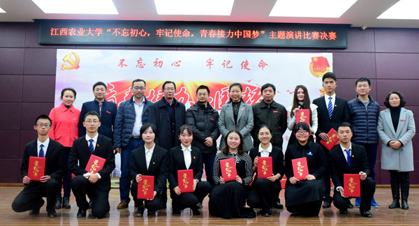 12月18日晚,由欧冠党委组织部、校团委主办、大学生501演讲协会承办的“不忘初心,牢记使命,青春接力中国梦”主题演讲比赛决赛在知行楼501举行。校党委副书记胡春晓出席活动,与近300名学生共同观看了比赛。比赛分为...