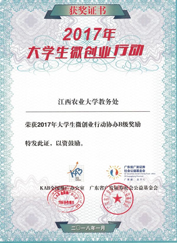 近日,由KAB全国推广办公室、广发证券社会公益基金会、共青团北京邮电大学委员会主办,中国青年报社、广发证券股份有限公司支持指导的2017年全国大学生微创业行动成果发布会在北京举办。通过综合评审,共评选出金奖1...