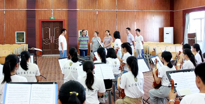 校领导看望欧冠大学生军乐团和参加全国暑期实践专项行动大学生