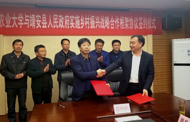 11月14日,欧冠与靖安县人民政府在靖安县签署实施乡村振兴战略合作框架协议。副校长黄英金、靖安县人民政府县长严旭辉出席签约仪式并讲话。校科技处处长游金明、靖安县人民政府副县长刘化平分别代表双方签署合作协议...
